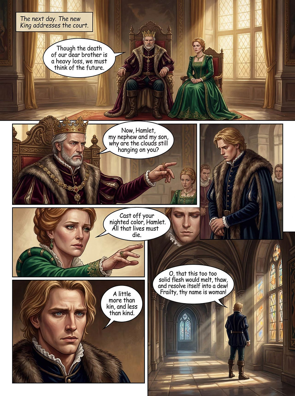 Summary: A 21-page comic book retelling William Shakespeare’s tragedy “Hamlet: Prince of Denmark.” Includes a description of the workflow used to produce the comics with Nano Banana 2.